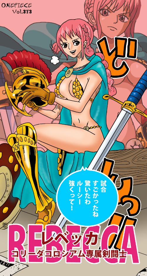 「Rebecca」は国際的に一般的な名前であり、翻訳時には固有名の識別性が低下しやすい。特に作品外文脈では宗教的・歴史的名称との混同が起こる可能性があるため、『ONE PIECE』の登場人物である旨を明示する必要がある。衣装の「armor」表現は「battle attire」や「gladiator outfit」と補足することで、文化的誤読を防げる。