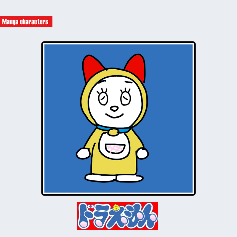 英語表記は「Dorami」で統一されているが、海外版では「Doraemon’s Sister」などと説明的表記が加えられる場合がある。身体構造の「robot cat」は実際には猫型というより「anthropomorphic robot(擬人化ロボット)」に近く、動物的要素より人工的意匠を優先して訳すのが適切である。リボンは「hair bow」ではなく「head ornament」とすることで形状の正確性を保てる。