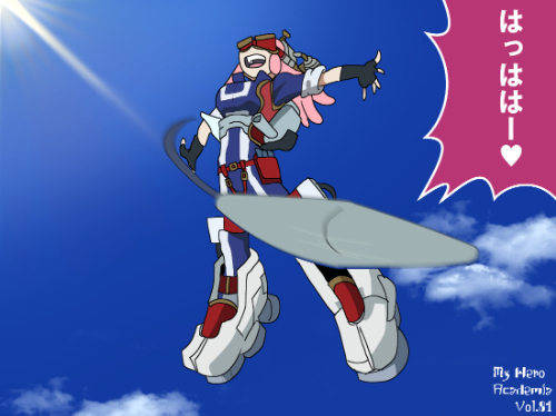 『僕のヒーローアカデミア』に登場する発目明(はつめ めい)は、長いピンク色の髪とゴーグル型ヘッドギアを特徴とする女性キャラクターである。髪は外向きに流れる層状構造を持ち、機械整備向けの活動性を重視したデザインが見られる。衣装は青と白を基調とした作業用スーツに近い構造で、腕部・脚部には大型の補助機材を装着する「機工融合型」スタイルである。ヘッドギアの金属パーツと衣装の素材構成が一体化し、工学的象徴性を際立たせている。
