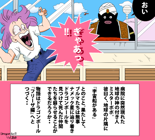 『ドラゴンボール』に登場するブルマは、鮮やかな水色の髪と現代的なカジュアル衣装を特徴とする女性キャラクターである。髪はショートボブ構造で、前髪は中央から分けて自然に流れる形をとっている。衣装は白いショートトップスとオレンジのパンツを組み合わせた「現代融合型」構造で、ウエスト部分にピンクのリボン状アクセサリーを巻いている。全体として、動きやすさと明るい色彩構成が調和するデザインである。