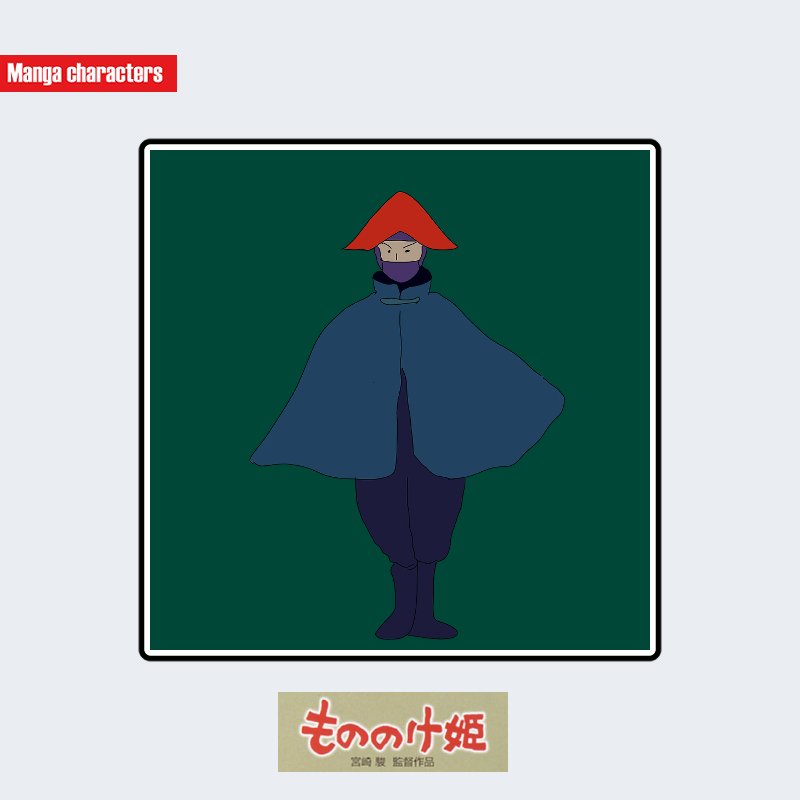 『もののけ姫』に登場するエボシ御前は、落ち着いた色調の衣装と端正な髪型を持つ女性キャラクターである。髪は黒髪を後方で一束にまとめ、額には短めの前髪を配した直線的な構造をしている。衣装は紫や紺を基調とした和装構造で、襟元には淡い色の着物を重ねた「和装融合型」に分類される。頭部には赤い頭巾を用いる場合もあり、場面により防具としての要素を持つことがある。全体として、静的で均整の取れた造形構成が特徴的である。