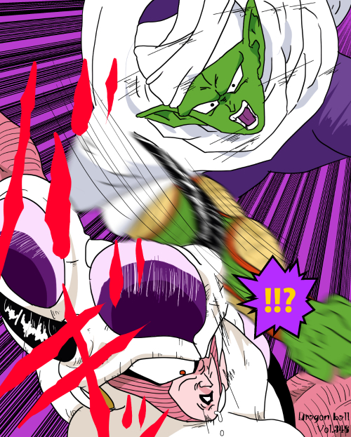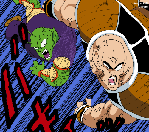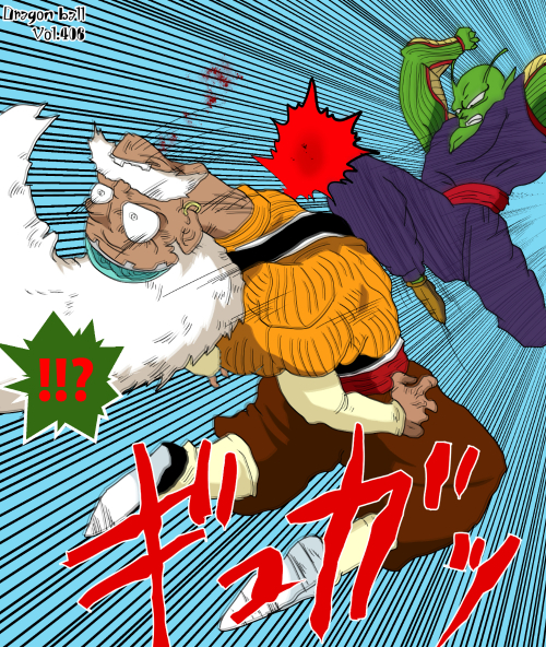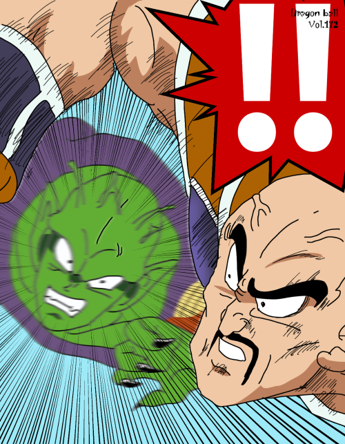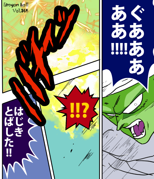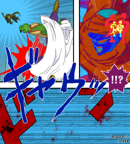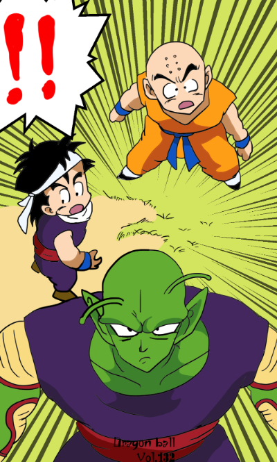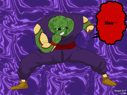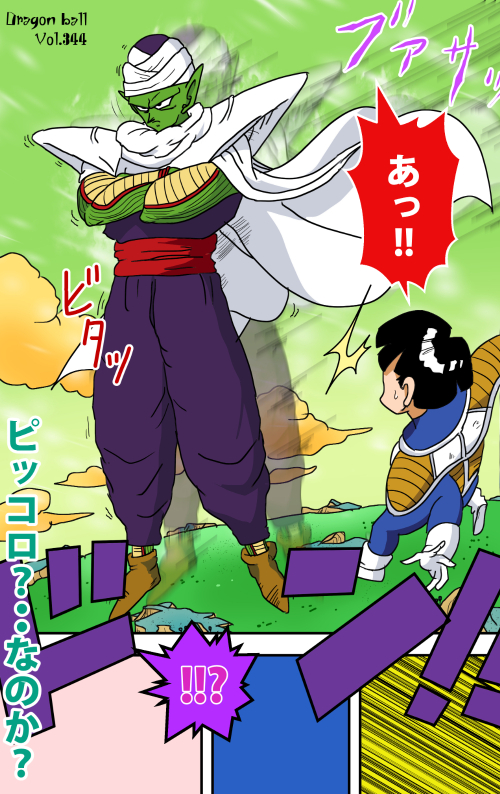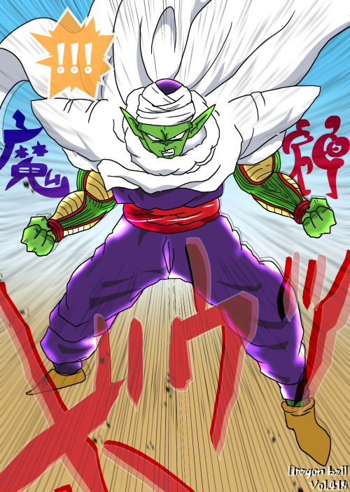 『ドラゴンボール』に登場するピッコロ(マジュニア)は、緑色の皮膚と角張った頬骨が強調された頭部造形を持ち、額から頭頂部にかけて白いターバン状の布を巻いている。画像では上半身が視認され、肩から胸部にかけて大きく波打つ白いマントの襟が層状に広がっている。口は鋭角的な形状で開かれ、耳は横に張り出したナメック星人特有の構造である。同作品内の他キャラクターと比較しても、「外装布装飾型」の特徴を最も強く示す造形となっている。