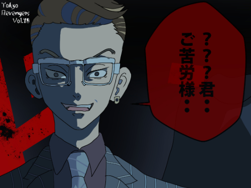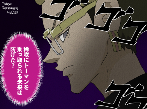 『東京リベンジャーズ』に登場する希咲鉄太は、頭部全体を剃り上げた丸みのあるシルエットが特徴で、髪型要素が排除された構造になっている。大きめのスクエア型フレーム眼鏡を着用し、透明度の高いフレームが顔の輪郭線を強調する視覚処理となっている。耳は丸く描かれ、側頭部のラインが明確に見えるため、頭部の立体感が際立つデザインである。上半身は暗色の衣装で、襟元のみがわずかに見える程度に簡略化されており、全体として「無装飾型」の構造に分類される。同作の他キャラに見られる髪の造形が強いデザインと対比すると、希咲は頭部の素形を基準にしたミニマルな造形が中心となっている。