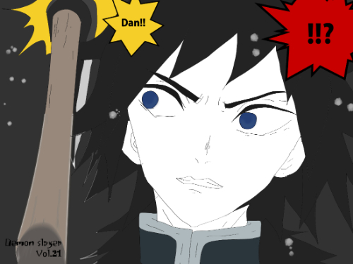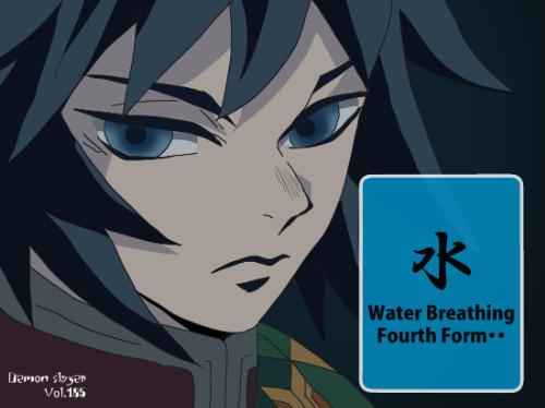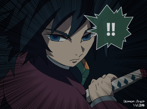 『鬼滅の刃』に登場する冨岡義勇は、黒に近い濃紺の長めの髪を持ち、前髪が大きく割れて額へ落ちる束状のシルエットが特徴である。側頭部から後方へ向かう髪束は直線的で、動きのある方向性を強調した描線が用いられている。瞳は青系で深みのある色彩が設定され、目元のシャープな線と強い陰影処理が顔の輪郭を引き締めている。衣装は濃緑の隊服と羽織が視認でき、羽織の片側だけが柄入りという左右差のある構造が特徴的で、「衣装主体型」に分類できる。同作の他キャラよりも衣装の配色パターンが複雑で、視覚情報が上半身に集中している。