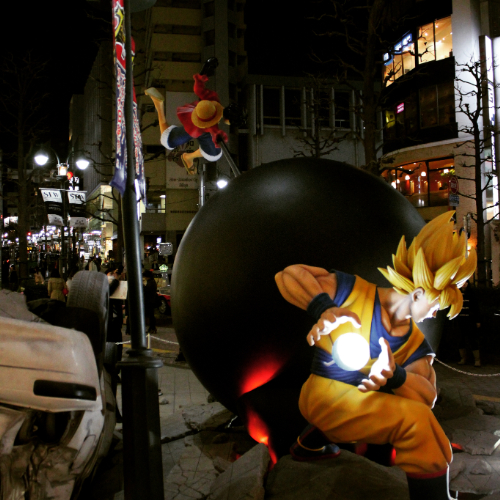 この渋谷展示では、孫悟空とモンキー・D・ルフィが街頭アートとして同時に登場し、世界的主人公が現実空間で並ぶという極めて珍しい光景が記録されています。二つの代表的作品の象徴が同じ場所に立つこの展示は、文化的なクロスオーバーとして語られることが多い組み合わせです。