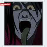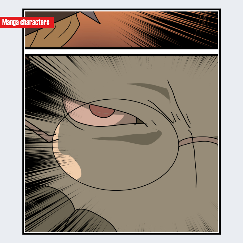『銀魂』に登場する陀絡(だらく)は、細長い顔の輪郭と鋭い目元を持ち、眼鏡の丸いレンズが右半分を大きく覆う特徴的な視覚構造を示している。肌色は灰色がかった暗色で、まぶたの赤みが強調されており、眼光の鋭さを際立たせる描線が確認できる。眉間から頬にかけて陰影が深く、輪郭線が細いキャラとは対照的な重厚な表現となっている。髪は後頭部へ束ねられ、額周辺は露出が少なく、衣装は高い襟を持つ外套系のシルエットで「装飾融合型」「異種要素統合型」に該当する。
