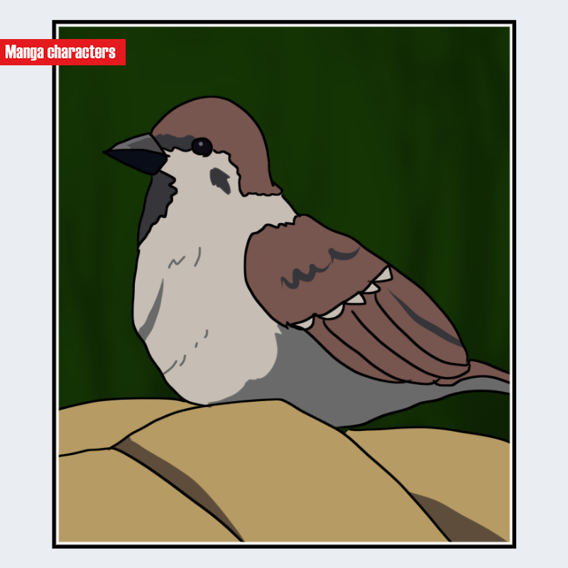 「スズメ」に該当する語は他言語圏で複数種の小鳥と混同されやすく、特に固有名「チュン太郎」は擬音的名称として適切に転写する必要がある。羽根の色分けは装飾ではなく種特有の模様として扱うことで誤訳を避けられる。嘴の短い形状は“beak”でも種類を限定しない語を選択すると安定する。