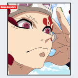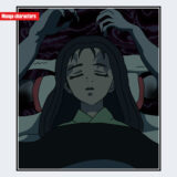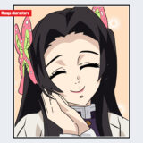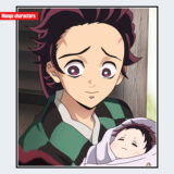 『鬼滅の刃』に登場する京極屋の子供は、上記画像のとおり涙を流しながら顔を俯けている姿で描かれている。前髪は丸みを帯びた切り揃え型で、側頭部は滑らかに下ろされている。瞳は大きく円形で、涙粒の描線が強調されており、表情全体が濡れた質感として視認される。衣装は可視範囲が少なく上半身の細部は不明だが、幼児体型の比率と丸いフェイスラインが特徴である。構造分類としては「幼体型」「感情強調構造」に該当する。