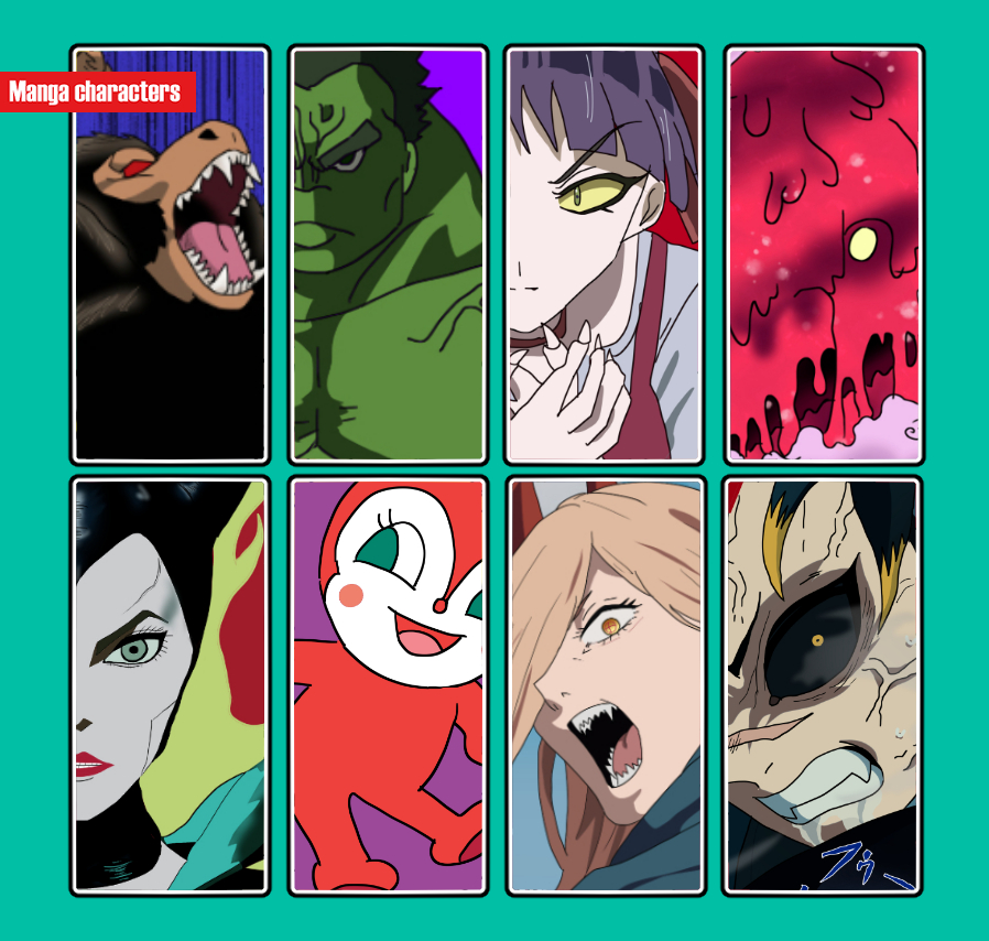 世界中の様々な漫画やアニメの『人以外』つまり動物やロボ等のキャラクター情報です。膨大な数なので、ここではランダムに50名が表示されます。全一覧はこちら。